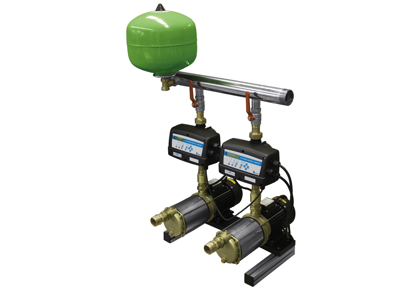 - zwei normal- bzw. selbstansaugende, wartungsfreie, mehrstufige, horizontale Kreiselpumpen der CPS/CPN 15/20/25/35-Baureihe