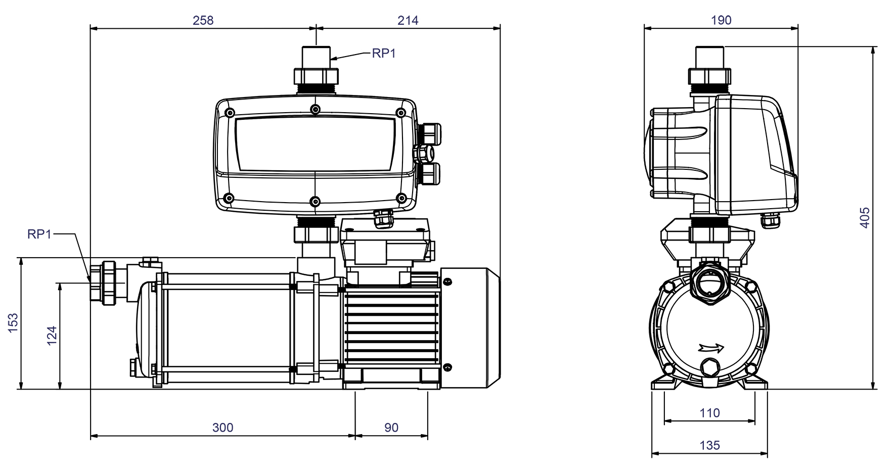 - normal priming, maintenance-free, multi-stage, horizontal centrifugal pump with automatic speed control by ZP Speedcontrol Comfort