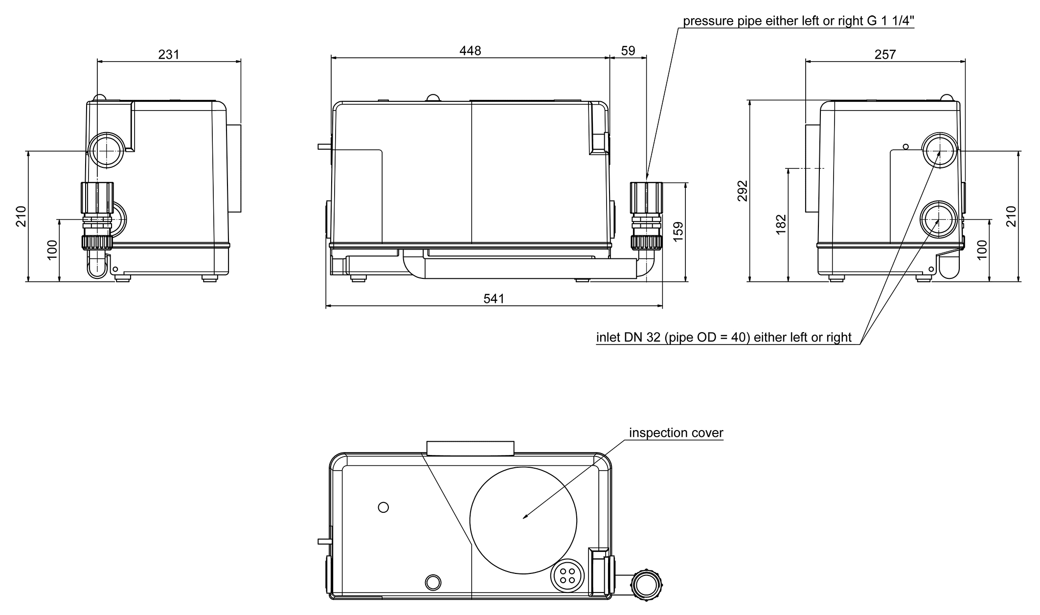 - pressure outlet 1 ¼“ IG with integrated non-return valve, optionally left or right
