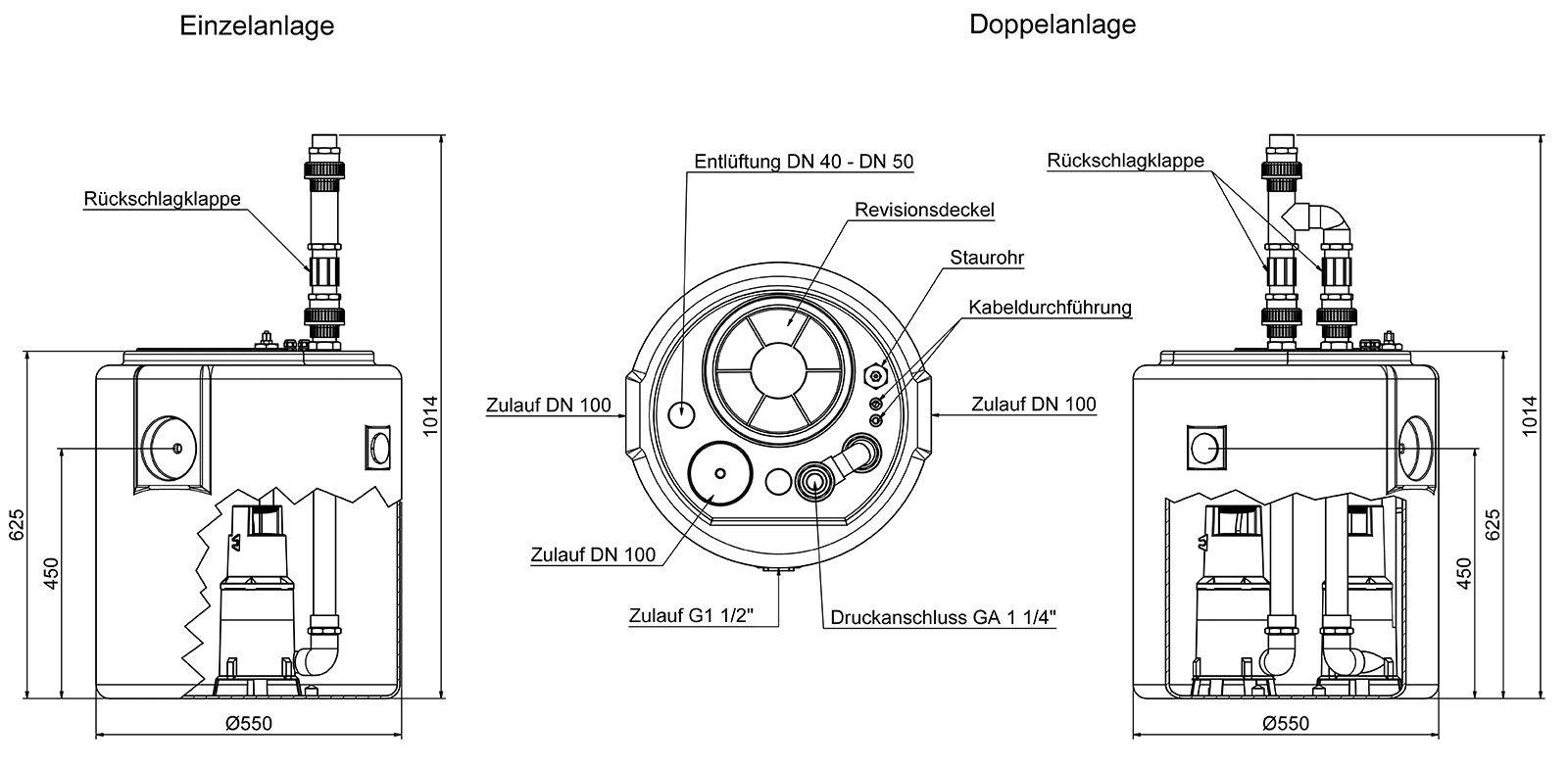 - pressure outlet incl. non-return valve(s) and gate valve